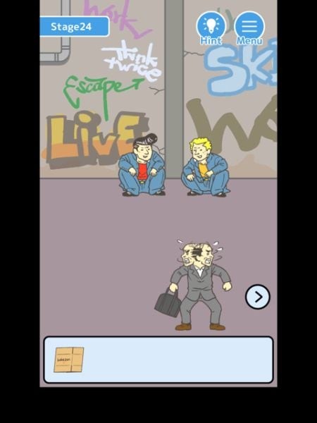 右に行き、バケツを持っている男をタップしてアイテムを取ります.次に、男性が立っていた壁の上にそれらのアイテムをドラッグします。