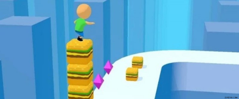 スタックと同じ色のキューブは、オーバーするとタワーに追加されます。それらはトラックの周りに散らばっているので、見つけたすべてのものを拾っていることを確認してください - それが生き残るための鍵です!