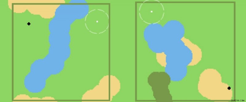 ボールは緑色の円の下を自由に通過できるため、これは重要ですが、木にぶつかると、壁にぶつかったように跳ね返ります。これによりショットが狂い、さらに悪いことに、砂場や湖に飛び込むことさえあります。