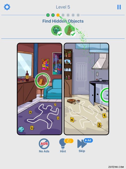 A:X 線ツールを眼鏡の入ったボトルの下に移動し、お金の隠し場所をタップします。