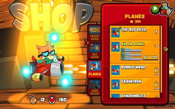 Unlike the guns, some planes are just flat upgrades to other planes. In this case, the Super Sonic is a big improvement over the Red Devil, as it has more speed, handling, and energy. There is no reason not to upgrade to this as soon as it is available.