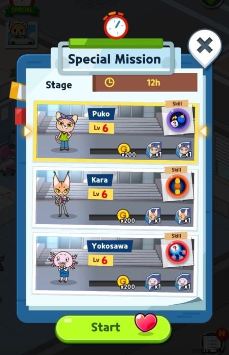 各レベルを開始する前に、ミッションを支援するゲームのキャラクターを選択できます。選択した仕事に最適なものがあることを常に確認してください。