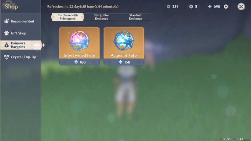 プレイヤーは、マイクロトランザクションまたはさまざまなゲーム内通貨 (ex-primogems) を通じてこれらの願いを購入できます。無料でプレイできるビデオゲーム タイトルであるにもかかわらず、Genshin Impact はプレイヤーが無料で願い事を実行できる方法を豊富に提供しています。