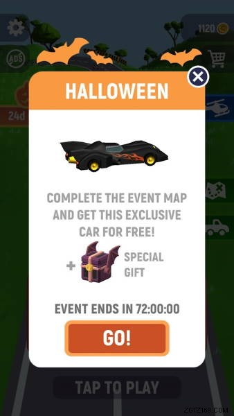 ボタンをタップすると、ハロウィーンをテーマにした特別なレベルに移動します。あなたの目的は変わりません:遠くへ行き、たくさんのコインを獲得し、それらのコインを使ってトラックをアップグレードし、このイベントでは 1,200 m の配送ポイントに到達します。