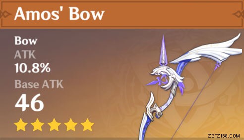 アモスの弓 副ステータスを増加させると、ATK% が 10.8% 増加します。これは、昇順だけでなく、武器をアップグレードすることによってさらに増加させることができます。一方、ビリディセント ハント ボウ ボーナスとしてATK値が上昇し、CRIT RATE%が増加します。