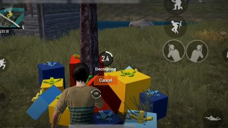 マークされた場所に着陸し、松の木の近くで装飾ボタンを押すと、このタスクが完了します。