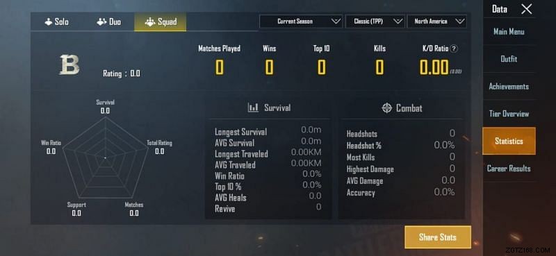自分の PUBG Mobile を見る プレーヤーがゲームが得意かどうかを推測できる統計。ただし、PUBG Mobile 以降 はバトル ロイヤル ゲームであり、試合は常に予測不可能であり、統計は絶えず変化します。