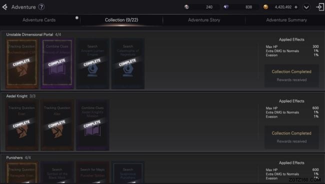 アドベンチャー カードを集めると、カード セットを完成させてキャラクターのステータスが上がるだけでなく、コーパス城のアドベンチャー チェアマンでギアと交換できるアドベンチャー トークンを獲得できます。さらに、アークエンジェルのレベルとスキルをレベルアップするための素材も獲得できます。