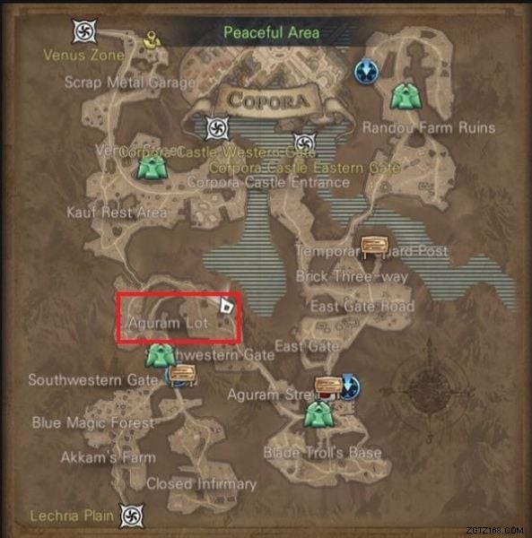 ミニ マップを 1 回タップしてマップを開き、コーパス エリアを選択します。マップでアグラム ロット ゾーンを探し、それを 1 回タップします。自動移動を開始し、アグラムロットゾーンに入ったら、ミニマップに注目してください。 「Protected One」は環境アドベンチャー カードなので、探しているのはミニ マップ上の緑の葉のサインです。かなり単純ですよね?