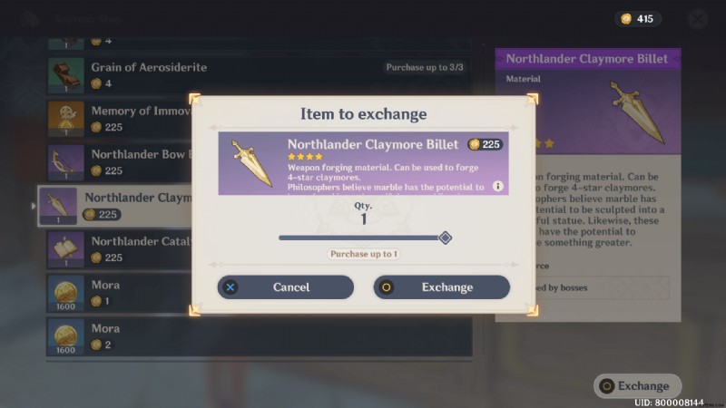 プレイヤーは Liyue Jewelry (または Souvenir) ショップで 225 Geo sigils で Northlander Claymore Billet を入手できます。 . Northlander Claymore Billet を購入して必要なリソースを集めたら、わずか 10 秒で武器を作成できます。