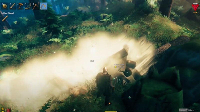 プレイヤーがすでに石斧または火打ち石の斧を持っていることを願って、彼らは松の木を切り倒し始め、次に丸太を伐採して木材と一緒にコアウッドを手に入れることができます.そして、前述したように、黒い森の場所は松の木でいっぱいなので、プレイヤーは問題なくヴァルハイムで余剰のコアウッドを手に入れることができます。 .
