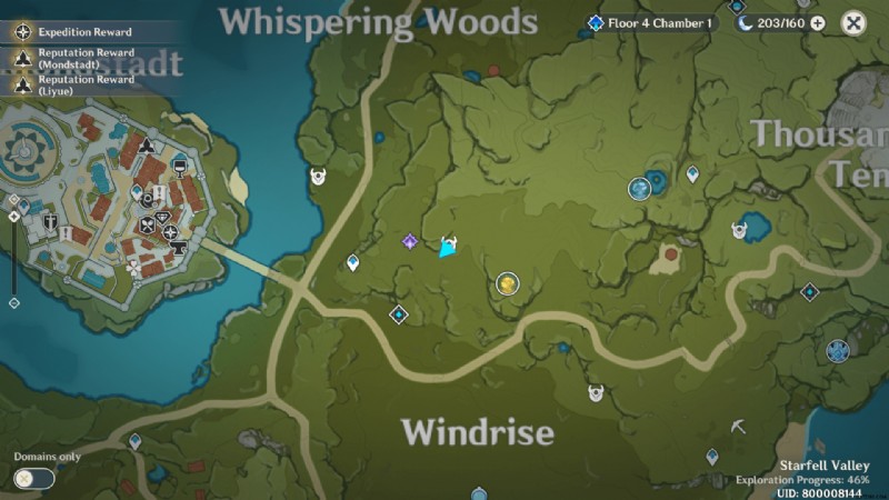 Crystalfly を見逃さないように、ゲーム内時間を 18:00 (夕方) に変更してください。モンドシュタット市の外では、プレイヤーは 2 つの Crystalfly を見つけることができます。