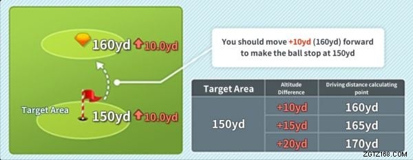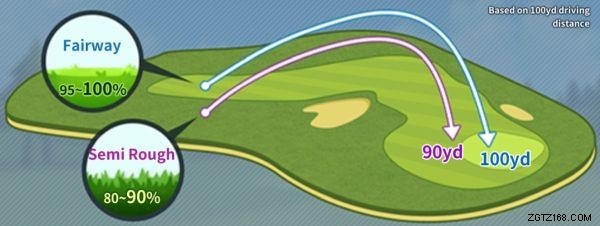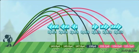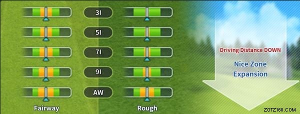 コントロール ゾーンの配置を 2 つの部分に分けます。まず、スイング スポットの地形、風の流れ (逆または前方)、高度差、着陸スポットの地形、および使用しているゴルフ クラブに基づいて、ヒットのドライビング ディスタンスを設定します (ラン距離に影響します)。