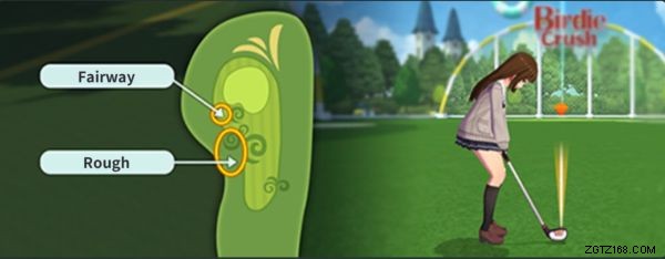芝生が より暗い エリア フェアウェイがラフよりも . 最大パワー ラフでは弱くなり、飛距離が短くなります。