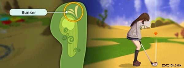 砂で覆われたエリア バンカーと呼ばれています .ボールの飛距離がずっと短くなります バンカーの最大パワーが弱いため、通常より.