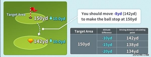 一般的に、ボールの落下点の高度がスイング スポットの高度より 1 ヤード低い場合は、コントロール ゾーンを 0.8 ヤード短く設定する必要があります。
