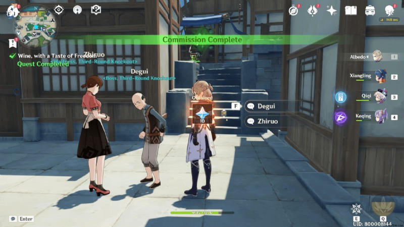 原神インパクトの一般報酬 Wine, With a Taste of Freedom デイリー コミッション クエストは、10 個のプリモジェムと 2 個のシルク フラワーです。ただし、プレイヤーはアドベンチャー ランクに基づいて追加の報酬を受け取ります。
