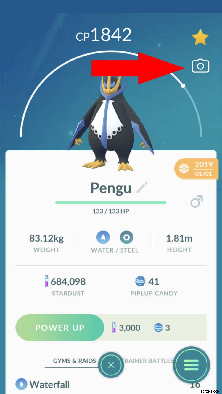 最終的にランドロスを獲得したら、ポケモンのリストからランドロスを選択し、画面の右上隅にあるカメラ ボタンをタップします。