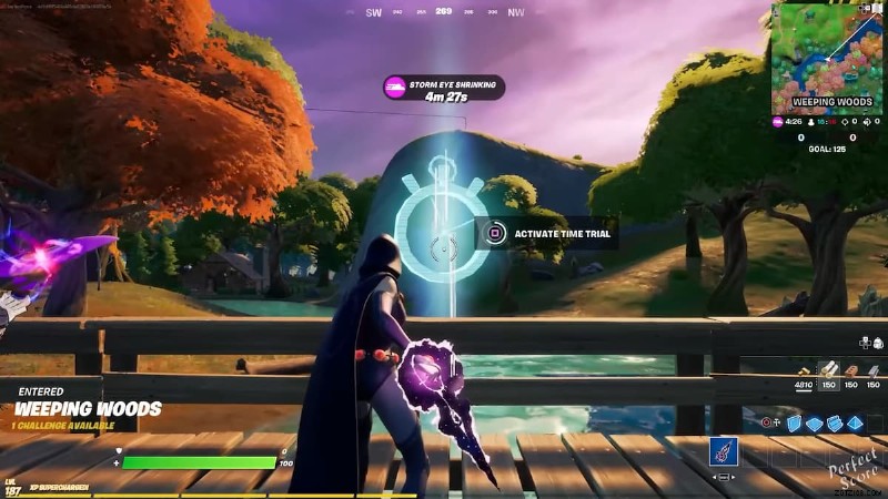 Fortnite の第 6 週の課題の 1 つは、ウィーピング ウッズまたはコーラル キャッスルでの水泳タイム トライアルを完了することです。 .このウィークリー チャレンジを完了すると、大量の 24,000 XP を獲得できます。