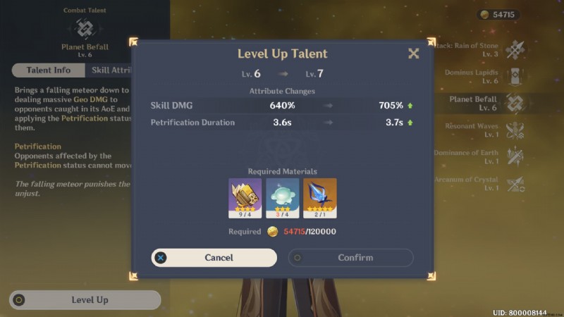 変換メニューでは、プレイヤーはウィークリー ボスから現在持っている 5 つ星タレントのレベルアップ マテリアルを見つけることができます。ご希望の素材をクリックしてください。私にとっては、Monoceros Caeli の牙が欲しかった 私の中壢のために。