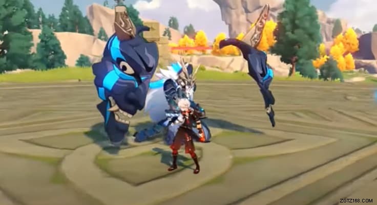 Maguu Kenki は 2 本の剣を使って地面を攻撃し、物理ダメージと AoE Cryo ダメージを与えます。