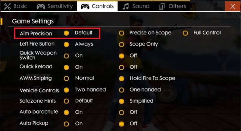 Aim Precision は Free Fire で最も便利な機能の 1 つで、プレイヤーの狙いを定めるのに役立ちます。このオプションを使用すると、武器の発砲時に自動的にヘッドショットを打つことができます。 Free Fire 「設定」に移動して、照準精度機能をデフォルトに設定します。 」 オプションから 「コントロール」へ 」タブ。