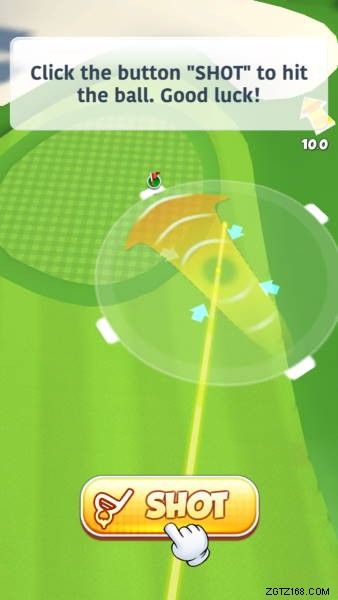 または、青い円を越えてゴルフ ボールをさらに引き戻すこともできます。これにより、ボールにより多くの力が加わり、ボールが遠くに移動しますが、次のステップのポインターの速度も上がり、良いショットのタイミングを計るのが難しくなります.この高リスク、高報酬の操作は、タイミングに十分慣れている場合にのみ試みてください!