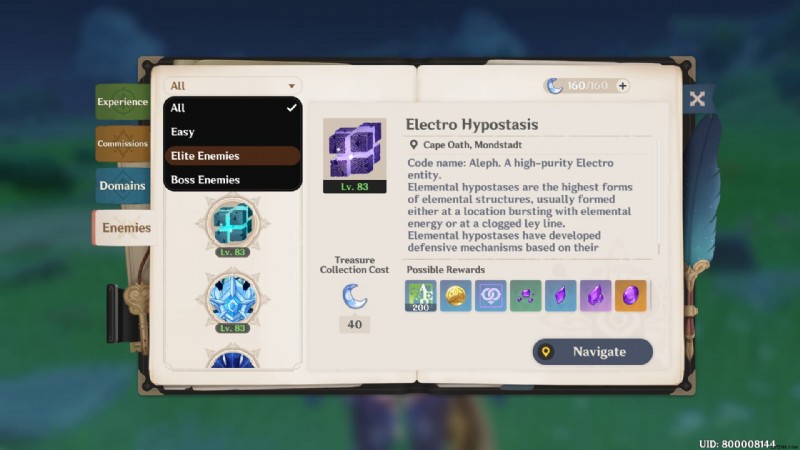 ドロップダウンから「Elite Enemies」を選択し、ナビゲートをクリックして、遺跡警備員の場所を即座に見つけます。
