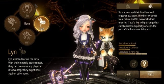 サモナーはその名の通りペットの猫を召喚して戦闘をアシストする。回復能力とインビジビリティを持つ唯一のクラスです。全体的にバランスの取れたクラスで、攻守ともに優れたスキルを持っています。 PvE パーティー プレイでは、彼らは通常、チームのヒーラー/バッファーであると同時に、DPS と CC を提供できます。彼らは PvP に関しても同様に優れていますが、唯一の弱点は非常にスクイーズなクラスであることです.
