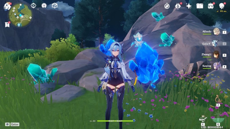 上に示したプレイヤー アイコンの場所に、いくつかの魔法の水晶の塊を提供する鉱床があります。 Hilichurl に必要な魔力の水晶片は 1 つだけです。