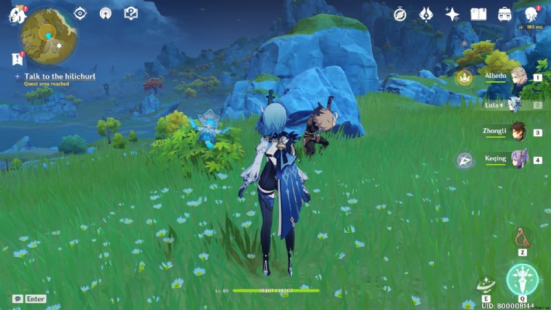 イベント クエストの開始時に、プレイヤーはマークされた場所に移動し、会話を希望する Hilichurl に話しかける必要があります。話したいヒリチュルを特定するには、ダンスをしている、またはその他の異常な活動をしているヒリチュルを探します。または、上記のスクリーンショットを参照してください。