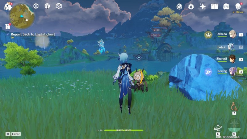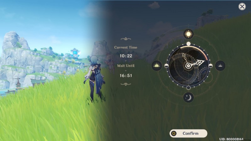 パイモンのメニューを開く 時間を 16:50 に変更 または 16:00 から 17:00 の間のその他の時間。マークされた場所に移動すると、珍しい Hilichurl を見つけることができます。