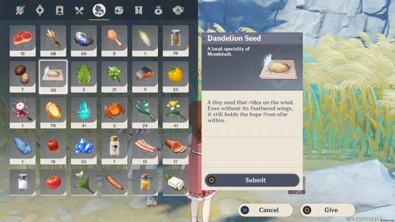 そのため、プレイヤーはタンポポの種を Hilichurl に渡して、Mimi Tomo Sighting 5 イベント クエストを進めることができます。参考までに、シードの説明に合う他のアイテムを Hilichurl に与えることもできます。