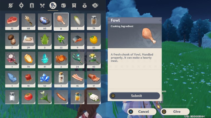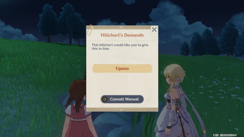 最初の Hilichurl は、Mondstadt の Cape Oath にあります。彼は「ウパノ」というアイテムを要求します。 」。彼に「家禽」を与える 」でイベントクエストを進めます。