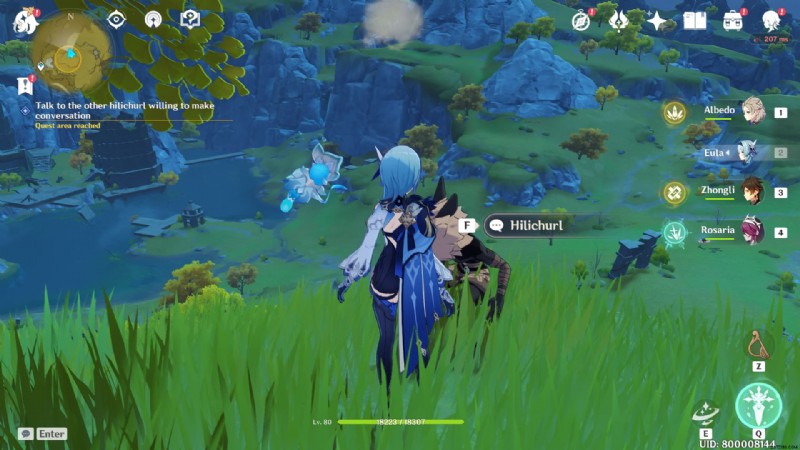 さぁ、もう 1 人の Hilichurl と話をして、Unusual Hilichurl の場所とタイミングの手がかりを得る時が来ました .マークされた場所に移動し、Hilichurl と話してください。