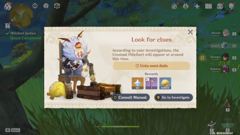 Genshin Impact でここまで到達したと仮定すると、 Sighting 6 イベント クエストでは、ゲーム マップ上に異常な Hilichurl の場所がマークされ、マークされた場所に彼が出現する時刻が表示されます。