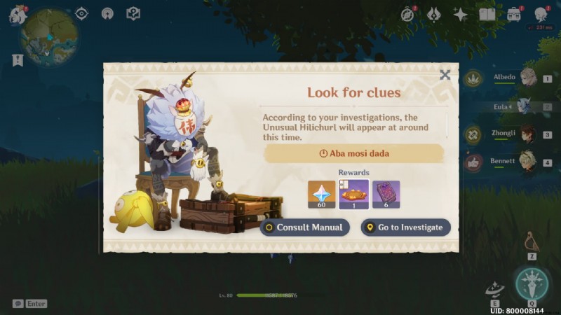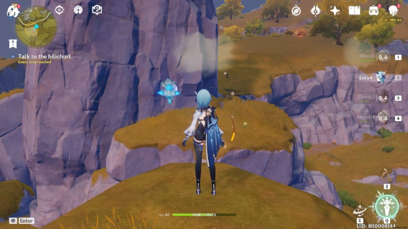 もう 1 人の Hilichurl と会話して、Unusual Hilichurl の位置とタイミングの手がかりを得る時が来ました .マークされた場所に移動し、Hilichurl と話してください。