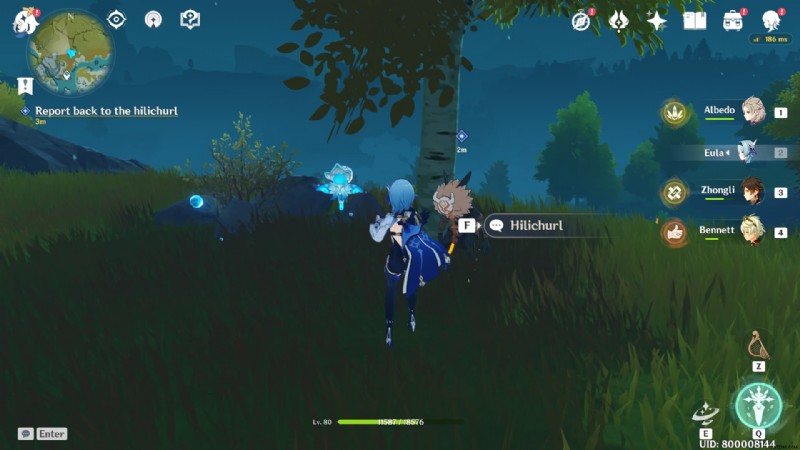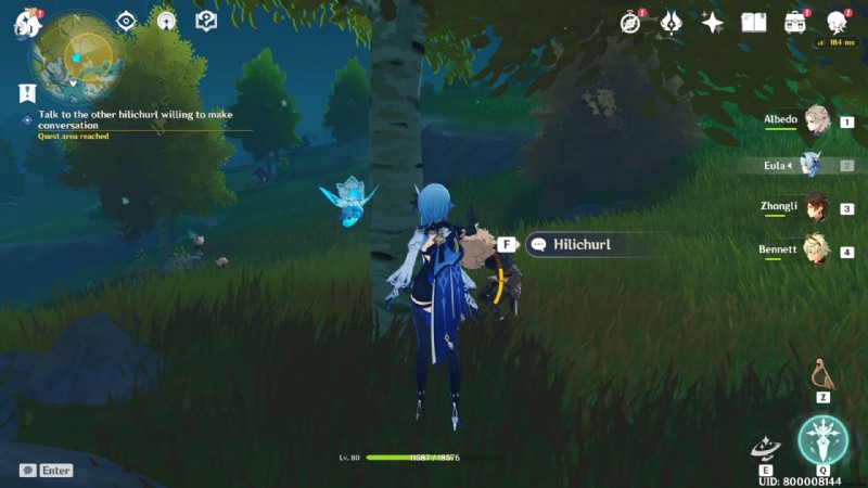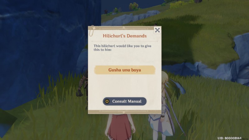 最初の Hilichurl は Liyue 地域にあります。マークされた場所に行き、ヒリチュルと話してください。彼は「Gusha unu boya」というアイテムを要求します。 」。彼に「ベリー」をプレゼント 」を押してイベントクエストを進行してください。