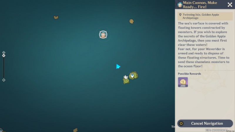 シャイニー フロットサムを入手するには、メイン キャノン、準備万端、発射!と呼ばれる短い海上小競り合いを完了する必要があります。 . 原神インパクトを開く マップして Hilichurl アイコンを探します。指定された場所に移動し、すべての敵を倒します。