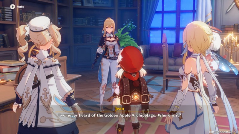 次に、プレイヤーはジーンと話し、黄金のリンゴ群島とクレーへの休暇を求めて、彼女が旅行者と一緒にその場所を訪れることができるようにする必要があります.