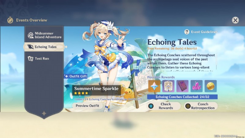 原神インパクトを開く イベント タブをクリックし、Echoing Tales イベントを選択します。イベント ページで、[Conch Retrospection] を選択します .