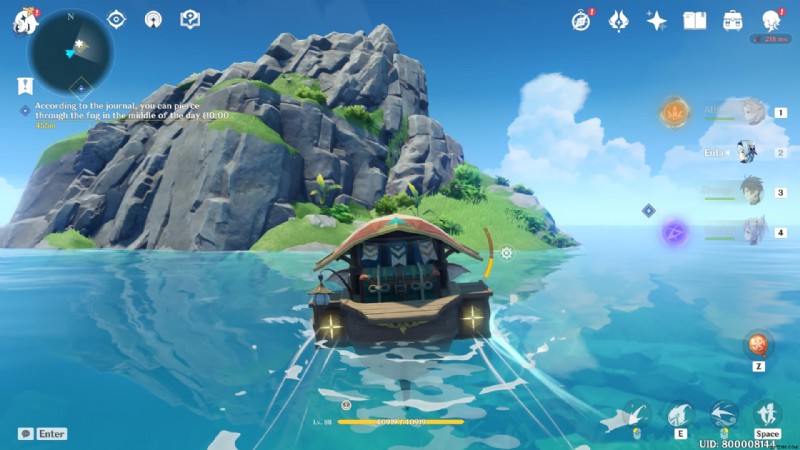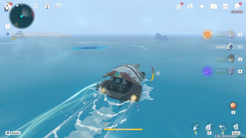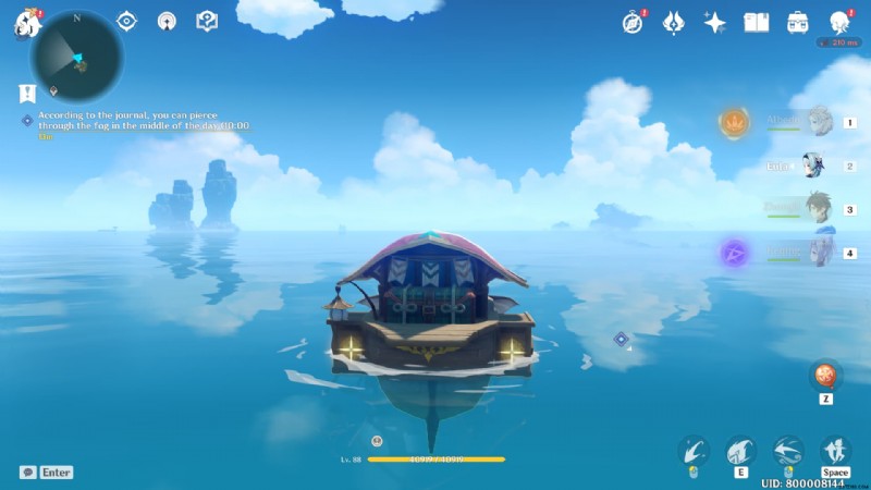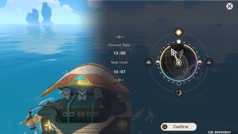 マークされたエリアに到達し、霧を横断する準備ができていると仮定します。パイモンのメニューを開き、時間を 10:00 に設定します。 10:00~14:00の間で設定できます。ただし、10:00~10:30頃に設定することをお勧めします。