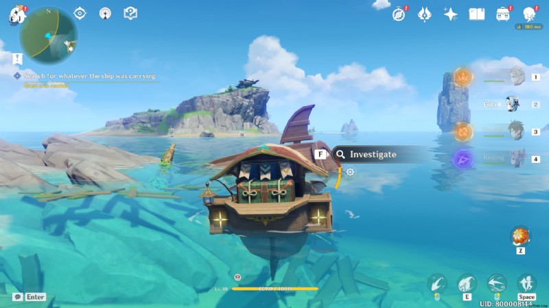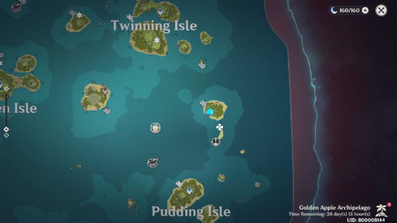 ツイニング島とプディング島の間にある名前のない島に移動します。 [プレイヤー アイコンの場所に移動し、壊れた船を探します].