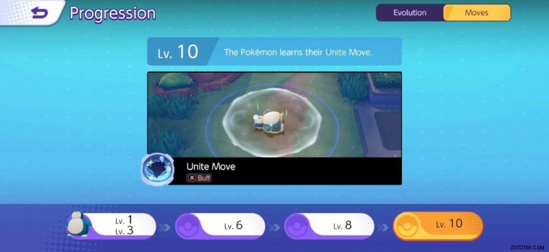 - ユナイト ムーブ (バフ): いびきをかいて居眠りし、範囲内の相手ポケモンに一定時間ダメージを与え、HPを回復させる。寝ている間に特定のわざを使うと寝返りを打てるようになり、効果範囲内にいる敵のポケモンにさらにダメージを与えることができます。