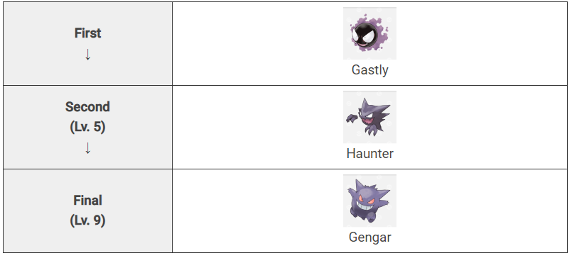 ゲンガーはレベル 1 でガストリーとして始まり、レベル 5 でホーンターに進化します。最後に、レベル 9 でゲンガーに変身します。