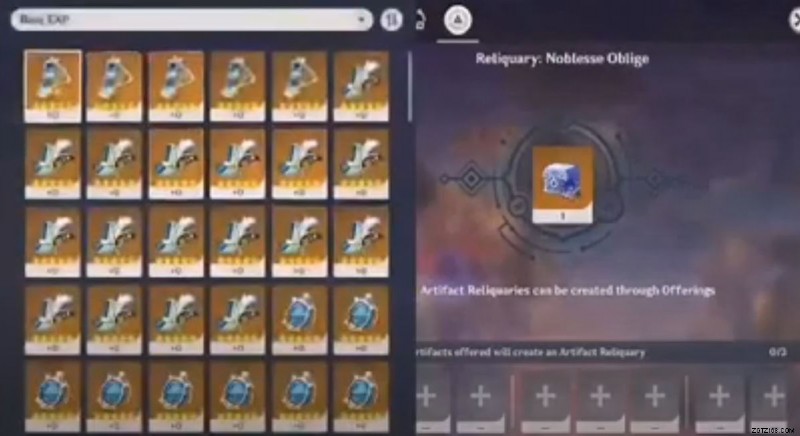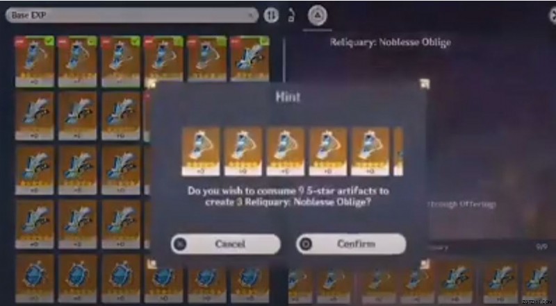 アーティファクトストロングボックスを選択したら。 5 つ星のアーティファクトを 9 つ犠牲にして 3 つの新しいアーティファクトを獲得するか、最小限のアーティファクトを犠牲にして 1 つを獲得することができます。