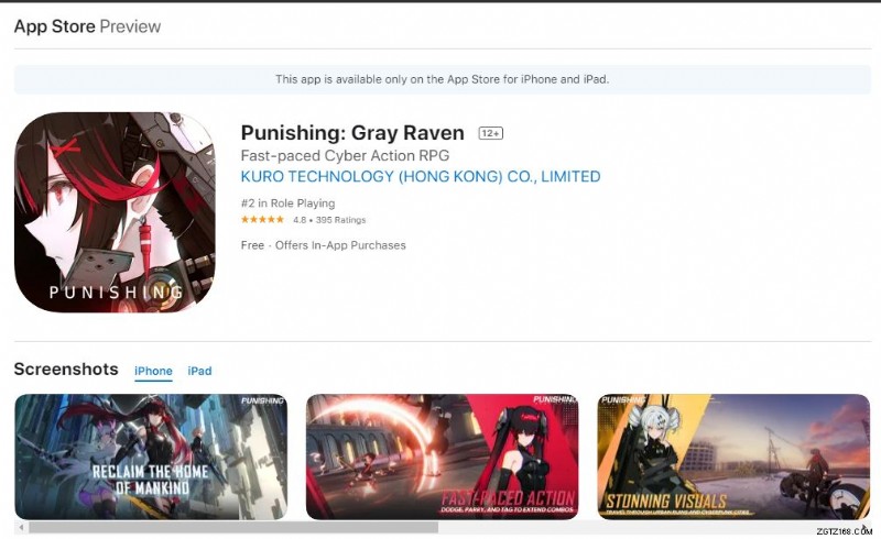 パニッシング グレイ レイヴンをダウンロードするために必要なことはこれだけです iOS デバイスで。