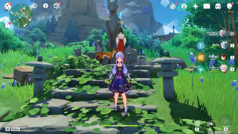 プレイヤーは、今田村の入り口近くの神社の前に立っているキツネのマスクを持つ少女に話しかけることで、「今田の奇妙な物語」ワールドクエストを得ることができます.コンダ村のウェイポイントにテレポートすると、彼女を簡単に見つけることができます.