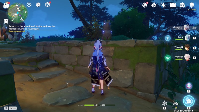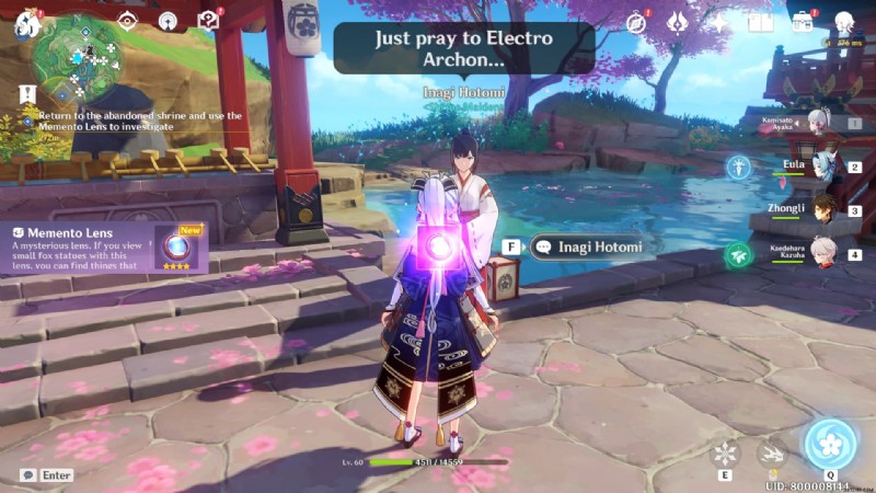 次に、プレイヤーは大鳴神神社に向かい、稲城穂富と呼ばれるNPCに話しかける必要があります.彼女は犠牲の捧げ物のクエストを進めるために必要なMemento Lensガジェットをプレイヤーに与えます.また、さまざまなパズルを解く際にも使用されます。