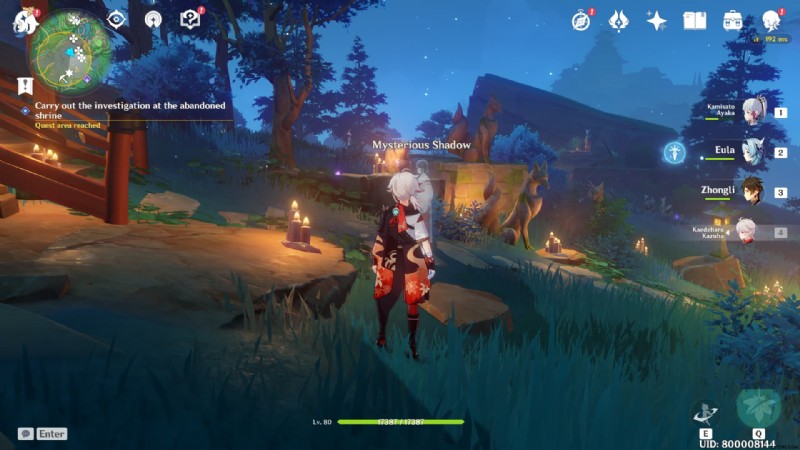 プレイヤーが調査を実行するために鎮守の森の近くにある放棄された神社に到着すると、彼らは謎の影を見つけます。彼女は幽霊です。 「廃墟の神社で調査を続ける」を完了するには プレイヤーは 3 つのミステリアス シャドウを見つけて操作し、中央エリアに移動する必要があります。